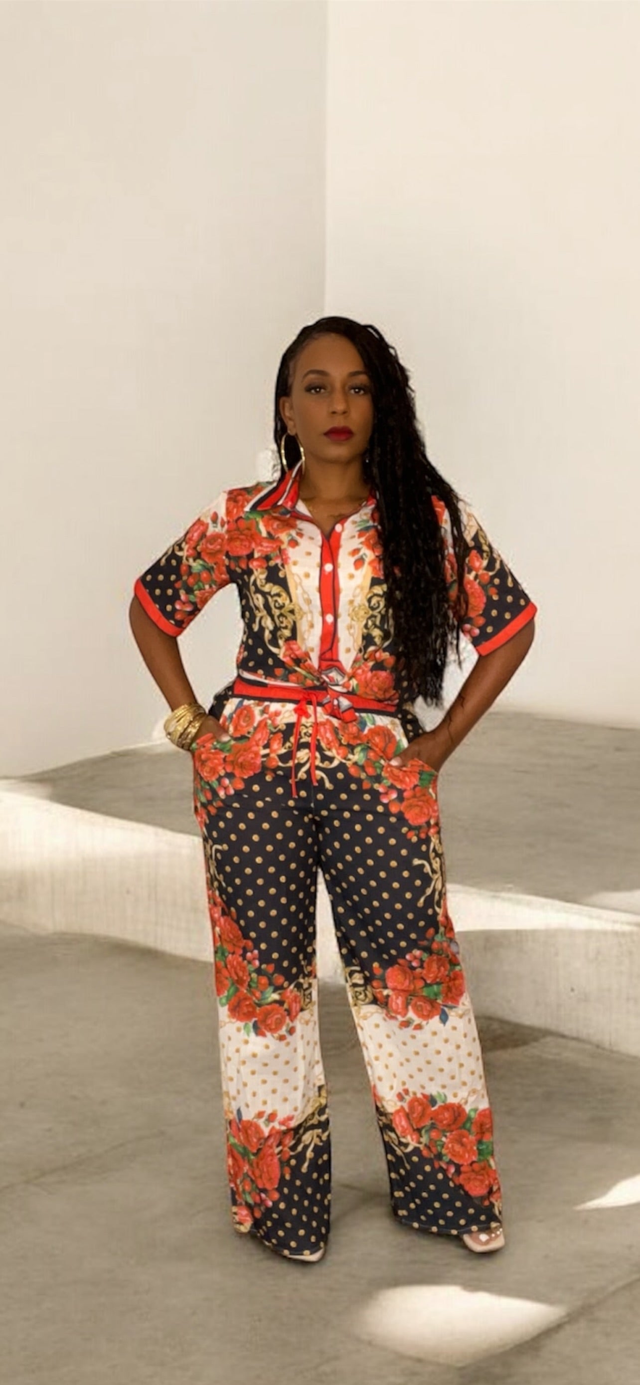 Bring vibrant energy to your wardrobe with the Love in Bloom Set, a playful 2-piece pant outfit featuring a lively floral pattern. Perfect for brightening up any casual day, this set combines comfort and fun for a look that’s full of life and ready to bloom wherever you go.